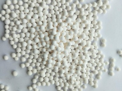 活性氧化铝干燥剂为白色球状多孔性颗粒,粒度均匀,表面光滑,机械强度大,堆积密度高,比表面积大,吸水率好。是吸附式干燥机和变压吸附(PSA)气体分离装置专用优质吸附剂,在石油化工、冶金、环保、食品、电子、航空等行业得到广泛应用。基本参数有:AL2O3≥92%,比表面积≥300m2/g,堆积密度≥0.68g/mL,孔容0.40-0.45ml/g,吸水率≥50%等。常用规格有:¢3-5mm,4-6mm,5-8mm等,行业标准HG/T3927-2007具体参数可订做。