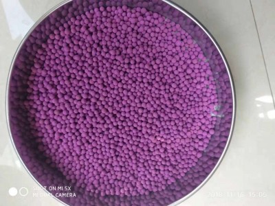 空气净化是指针对室内的各种环境问题提供杀菌消毒、降尘除霾、祛除有害装修残留以及异味等整体解决方案,提高改善生活、办公条件,增进身心健康。氧化铝高锰酸钾球颜色是紫红色或粉红色,它是利用高锰酸钾的强氧化性,将空气中的具有还原性的有害气体氧化分解,从而达到净化空气的目的。对有害气体H2S、SO2、HCHO等有很高的去除效率。规格从1-12mm不等。可订单生产。基本参数有:AL2O3≥80%,堆积密度≥0.85g/mL,孔容0.42-0.45ml/g,粒径Ф2—7mm等。具体参数可订做。